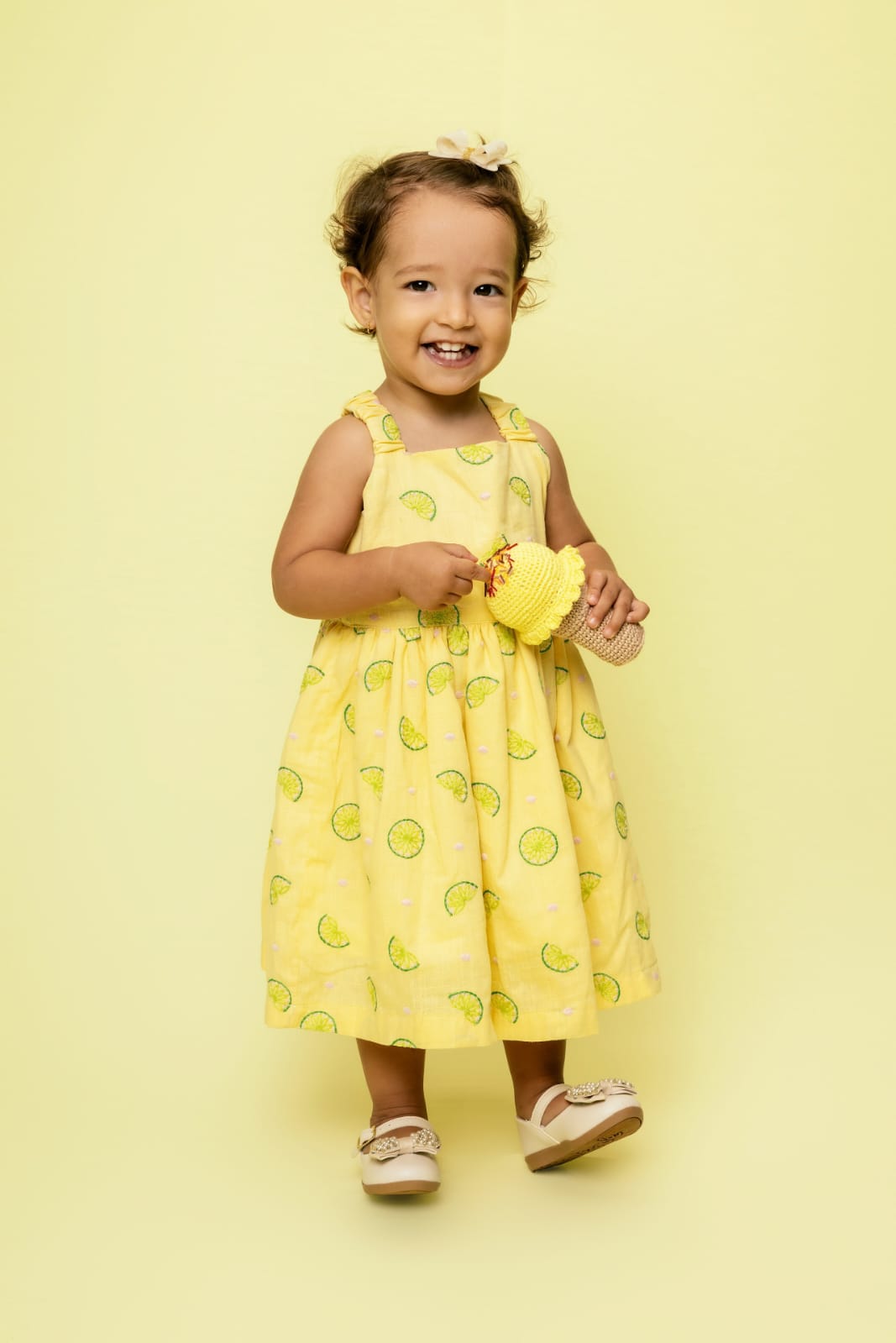 Um verdadeiro sonho! Esse vestido infantil bebê amarelo com bordados de limões combina delicadeza e sofisticação, criando um look encantador para momentos especiais. As cores vibrantes e os detalhes bordados deixam a peça ainda mais diferenciada!