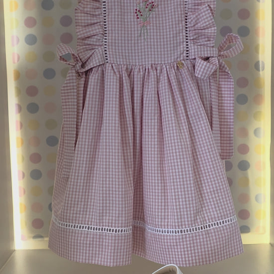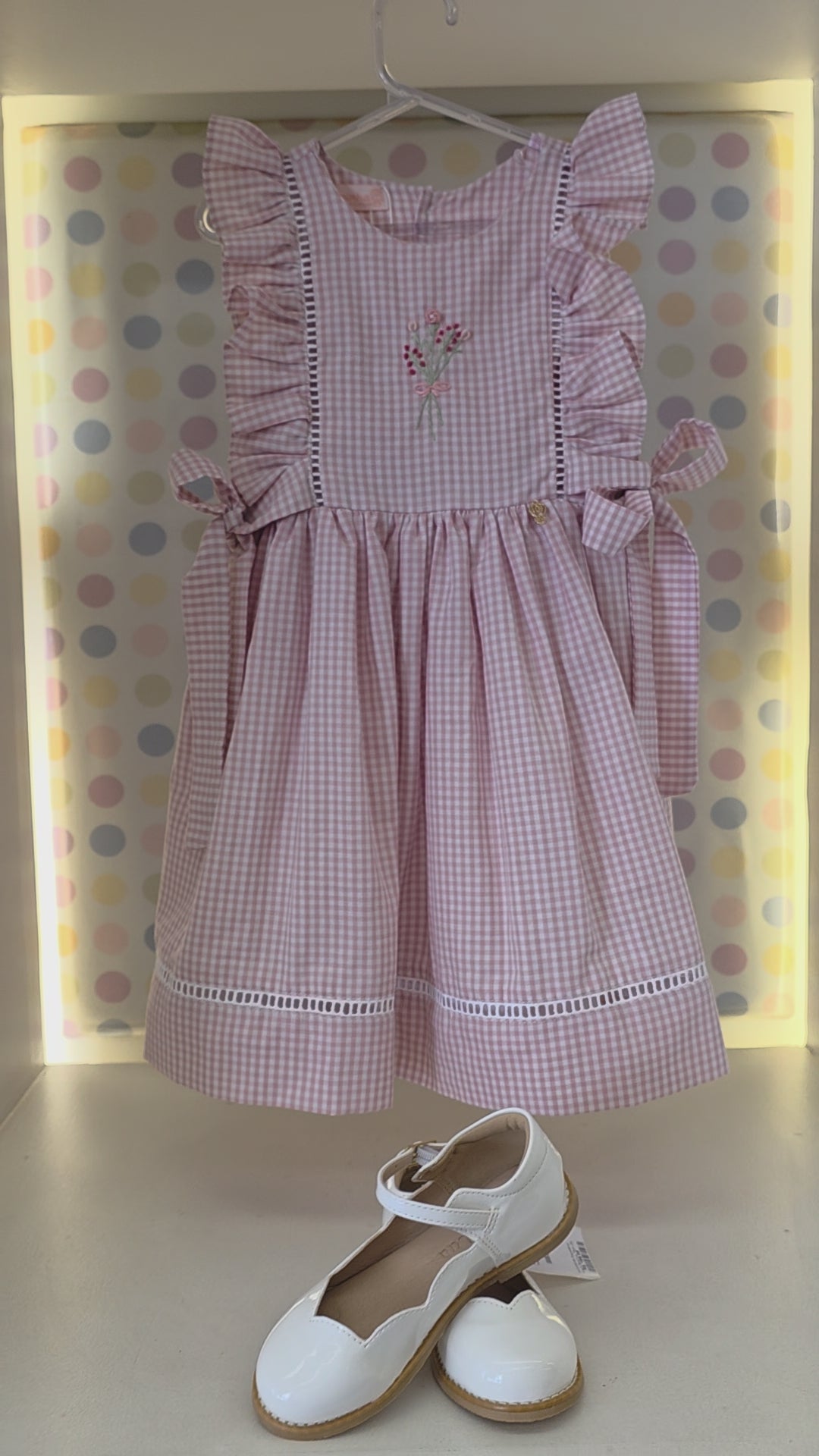 O vestido Buá em tecido xadrez de rosa é pura poesia em forma de roupa! Possui bordado manual e laços laterais para melhor ajuste ao corpo. Fechamento em botões nas costas para facilitar a colocação. Ideal para festas, eventos especiais ou sessões de fotos, esse vestido é a definição perfeita de um look de sonho.