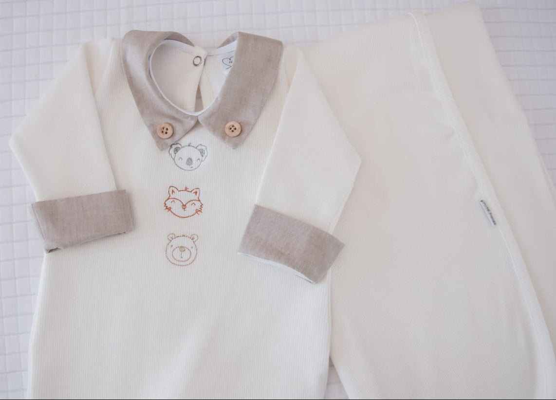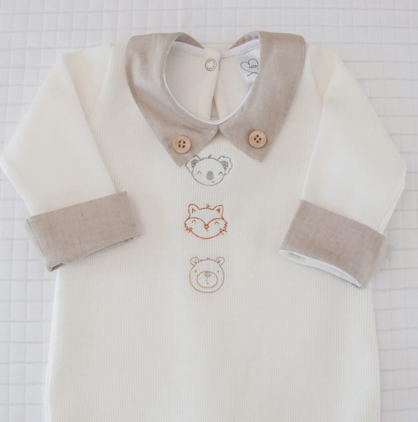 Um macacão de bebê bordado é uma peça de vestuário única, que combina a praticidade do macacão com o toque delicado e artesanal do bordado. É uma escolha acertiva para saídas de maternidade e para presentear, pois adiciona charme, elegância e um toque personalizado ao visual do bebê. O macacão bordado é uma peça versátil, adequada tanto para o dia a dia quanto para ocasiões especiais. É charmoso e funcional, mantendo o bebê sempre aconchegante e bem-vestido. Este macacão bebê Buá é confeccionado em malha tricotada 100% algodão.