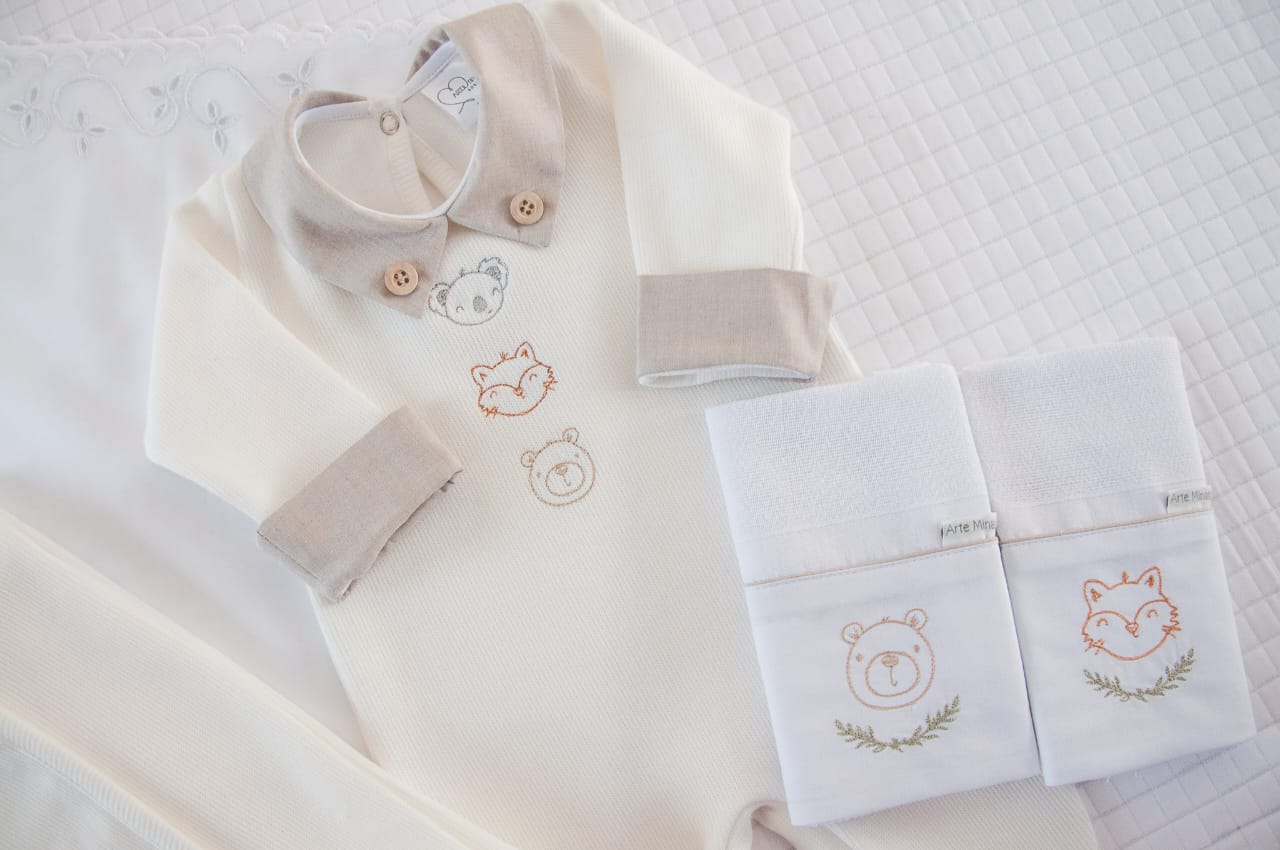 - Fechamento: abotoamento nas costas e entrepernas, que facilitam a troca de fraldas e a hora de vestir.