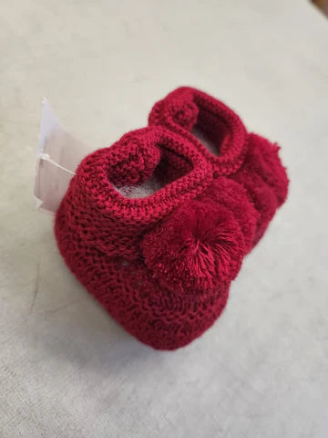 Sapatinho em tricot vermelho tramado indicado para recém nascidos. Tamanho único.