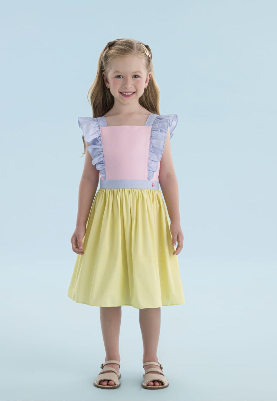 O vestido infantil Mon Sucré é puro charme e sofisticação para os dias especiais. Com alcinhas de delicados babadinhos nos ombros e saia com pregas amplas, ele une conforto e elegância com perfeição. O caimento leve e o visual clássico fazem dessa peça uma escolha encantadora para aniversários, passeios ou momentos de pura delicadeza.