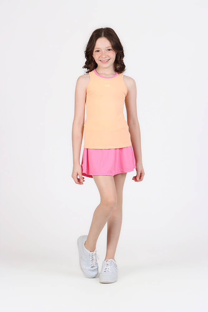 Blusa regata coral com rosa da linha Sport Siri confeccionada em lycra super leve e confortável com proteção UV50+. Essa linha foi pensada para proporcionar conforto e versatilidade na hora dos esportes e brincadeiras.